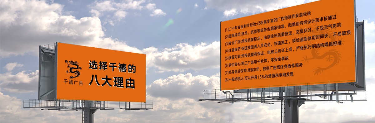 世紀(jì)之交,石家莊千禧廣告裝飾有限公司(下方簡(jiǎn)稱(chēng)千禧廣告公司或公司)自2000年10月10日創(chuàng)立伊始,即在燕趙大地落地生根,成長(zhǎng)為國(guó)內(nèi)擁有23年施工經(jīng)驗(yàn)的實(shí)體型戶(hù)外廣告設(shè)施制作工廠。公司集新品研發(fā)、結(jié)構(gòu)設(shè)計(jì)、生產(chǎn)制作、施工建造于一體,現(xiàn)代化生產(chǎn)廠房為大中型高炮廣告牌(又稱(chēng)高炮廣告塔、單立柱廣告牌、單立柱廣告塔、擎天柱廣告塔、擎天柱廣告牌)、龍門(mén)架、三面翻鋼結(jié)構(gòu)、LED廣告屏鋼結(jié)構(gòu)等的精益生產(chǎn)、高效流水化作業(yè),產(chǎn)品交工質(zhì)量過(guò)硬,公司擁有現(xiàn)代化生產(chǎn)車(chē)間,配備了不可或缺的硬件裝備。